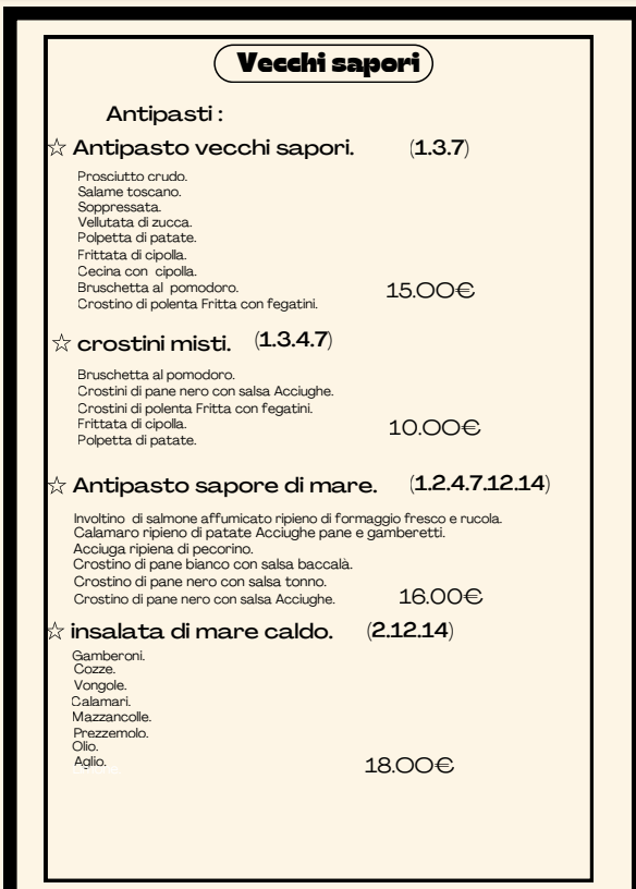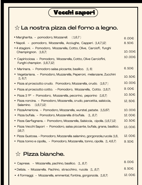 Ogni dettaglio, dall’impasto della pizza ai piatti della tradizione lucchese, è pensato per offrire ai nostri clienti un’esperienza culinaria completa e soddisfacente. La proposta gastronomica di Vecchi Sapori è un viaggio tra i sapori della cucina tipica lucchese.