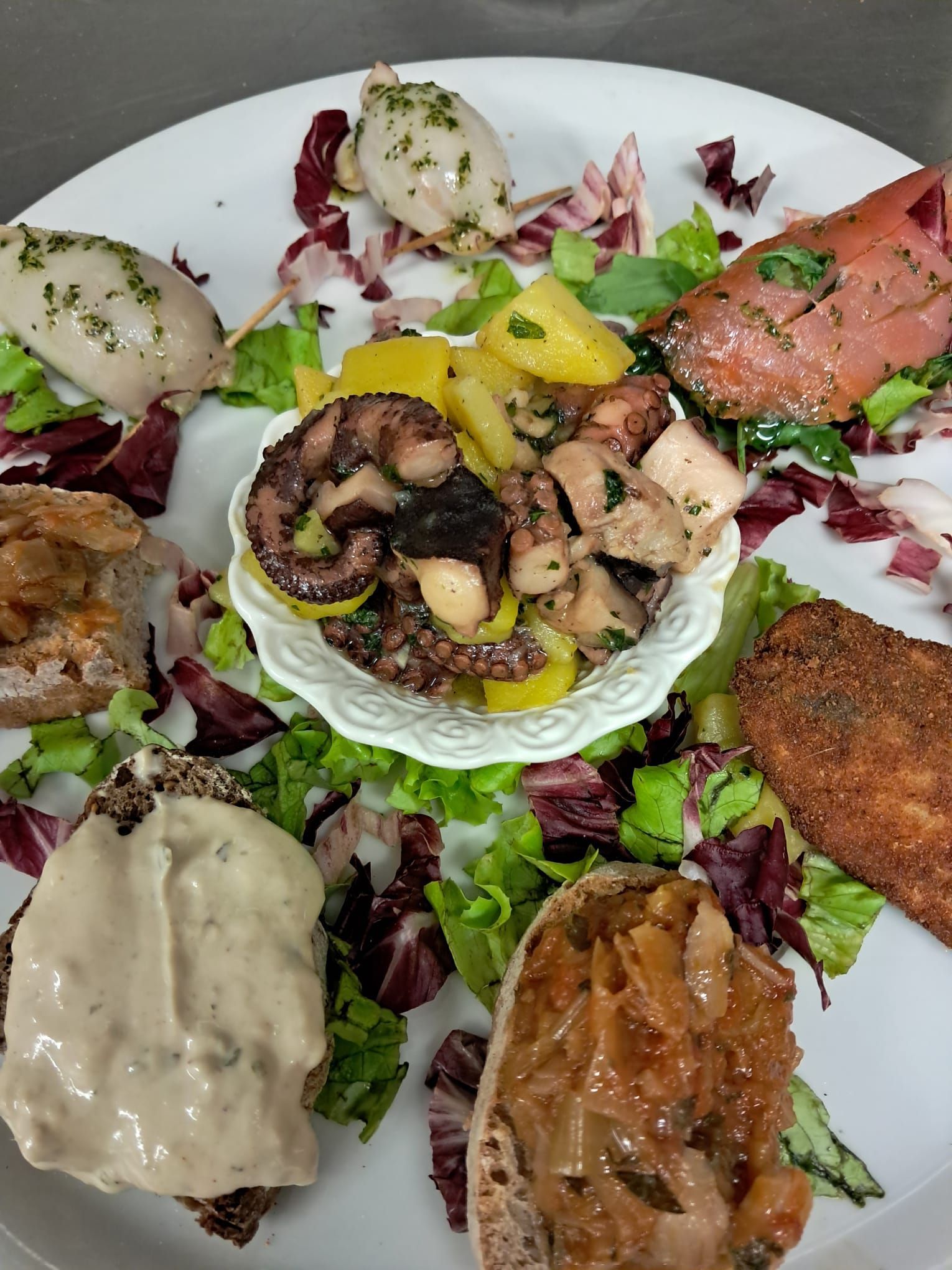 Tra le nostre proposte, troverai i celebri tordelli lucchesi, preparati con una pasta fresca fatta in casa e ripieni di carne, conditi con sugo di pomodoro e parmigiano. Non mancano piatti come le rovelline lucchesi, una preparazione tradizionale a base di carne impanata e fritta, servita con salsa di pomodoro. Un’altra specialità imperdibile è il baccalà in umido con porri e polenta morbida, una pietanza che celebra i sapori semplici della cucina povera lucchese, esaltando al meglio l’unione tra mare e terra.