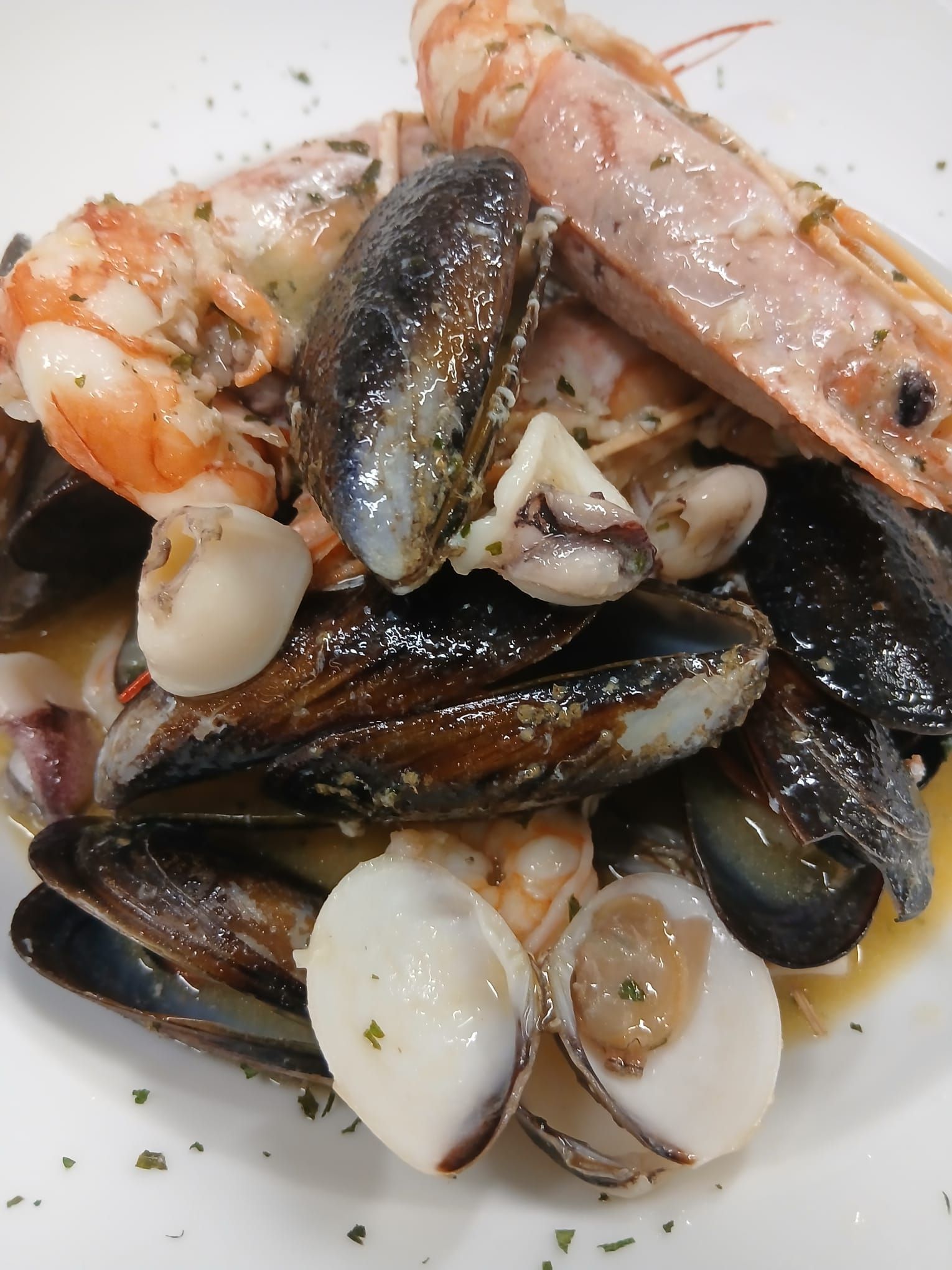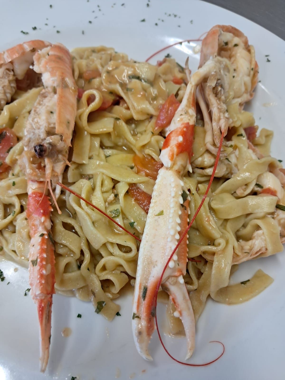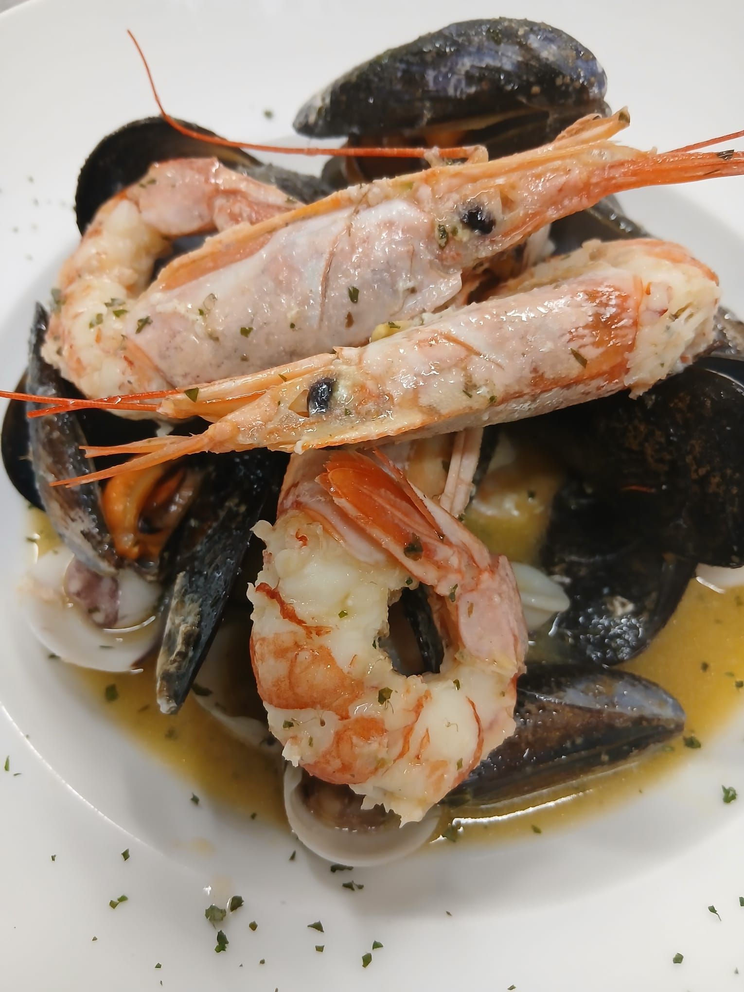 Il nostro Antipasto Sapore di Mare regala un assaggio equilibrato di delicati sapori marini, ideale per iniziare. A seguire, l'Insalata di Mare Caldo sorprende con la sua leggerezza e intensità, mentre i Tagliolini fatti in casa con scampi e confettura di datterini offrono un equilibrio perfetto tra dolcezza e freschezza, esaltando ogni sapore.